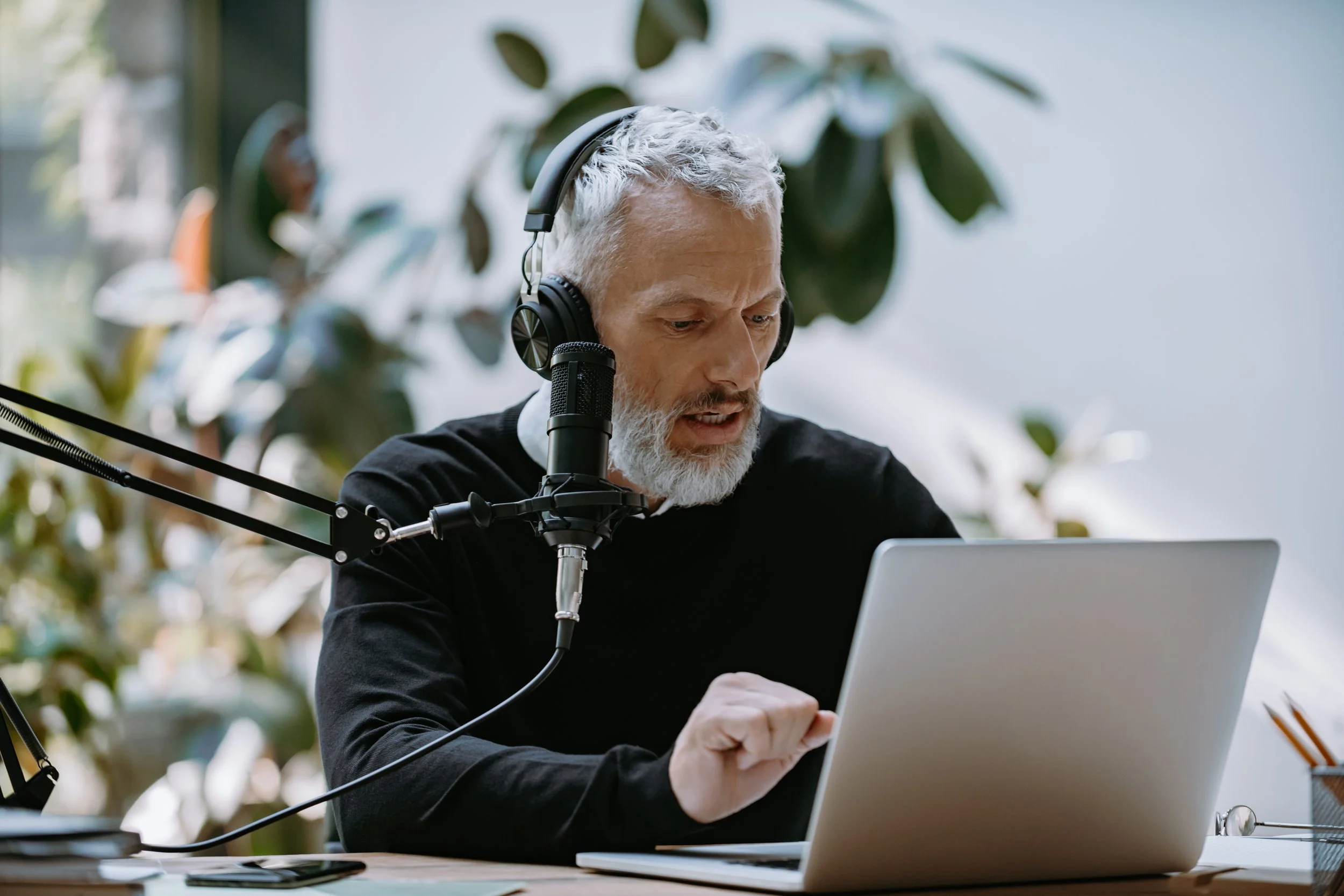 You provide the space, we’ll bring the crew and equipment to you. Record your podcast in your offices or workspace in-person with your guests face-to-face.